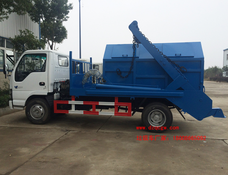 組成部分:國內知名品牌慶鈴五十鈴原裝底盤(全國聯保)、垃圾箱、取力器、多路換向閥、擺臂、液壓系統、操作系統等組成。(舉升油缸及鎖緊油缸系我廠自行研發生產的雙作用油缸。)