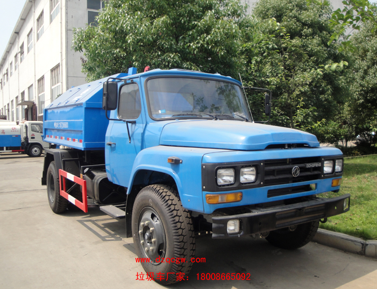 車輛名稱: 東風尖頭勾臂垃圾車 整車型號: SZD5110ZXXE4(炎帝牌)