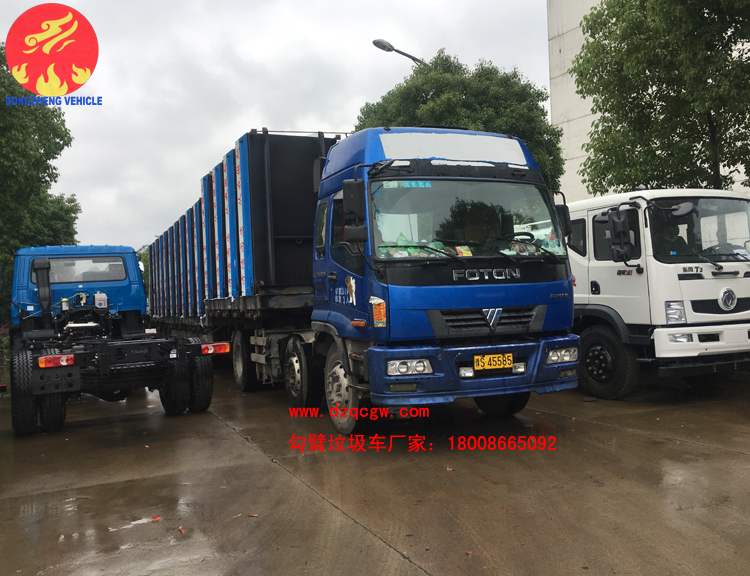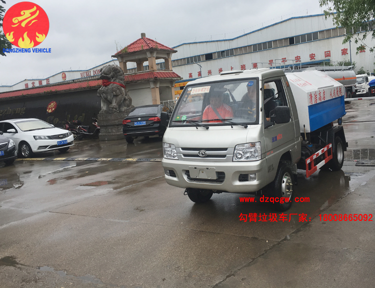 我公司生產的勾臂垃圾車采用高新設計可伸縮的鉤臂,實現垃圾廂的二次吊裝,自吊上放下,可自行傾倒垃圾。該車結構簡單,操作穩定方便,裝卸效率高,機械化程度高,節省人力。一車可帶多個大廂,在裝卸的運輸過程中可有效地避免二次污染。