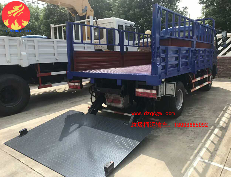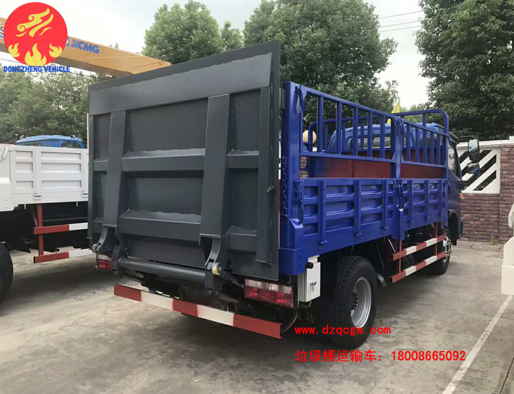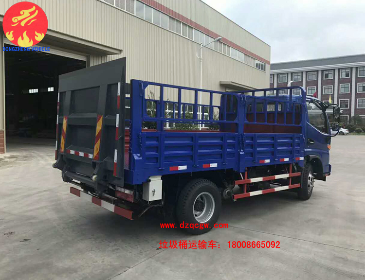 由于人民生活水平不斷提高,為了滿足人們對垃圾治理的及時性、徹底性的需求。我公司近期推出一種新的垃圾運輸品種即桶裝垃圾運輸車。該類型的垃圾運輸車為國五排放,整車上藍牌,可以市內小區內穿梭,車廂為倉柵,尾部帶液壓尾板,可一次性處理20-30余桶生活垃圾。大大的提高了垃圾收集的速度。