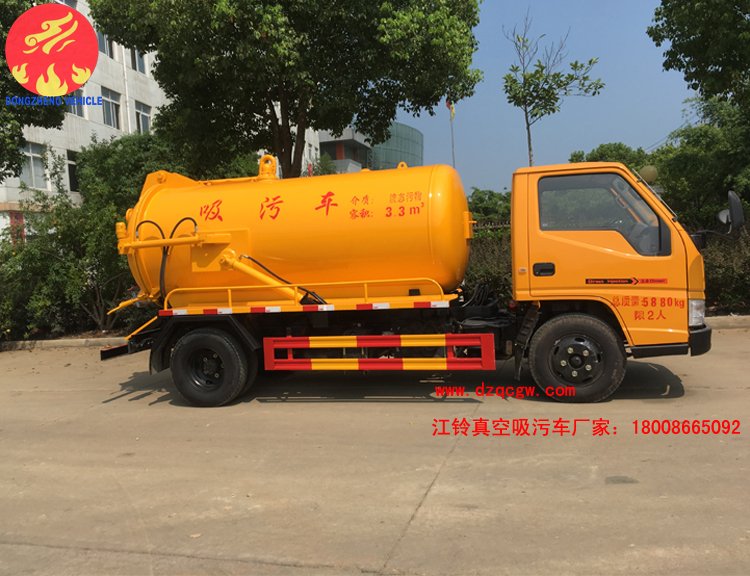 底盤說(shuō)明江鈴單排可翻轉(zhuǎn)駕駛室,國(guó)五江鈴115馬力柴油發(fā)動(dòng)機(jī),7.00鋼絲胎,油剎,五檔箱,后橋4噸,帶排氣制動(dòng),ABS。吸污罐體有效容積: 4.2立方米,介質(zhì):液態(tài)污物,罐體外形尺寸(直段長(zhǎng)×直徑)(mm):3000×1350。