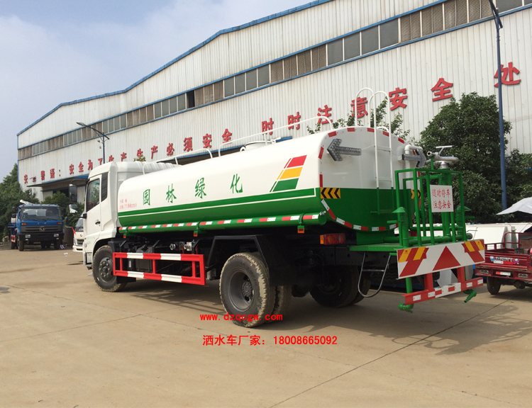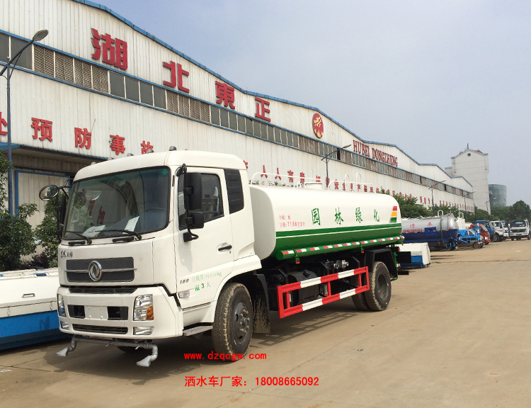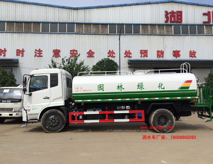 底盤說明:東風(fēng)天錦國五底盤,國五康明斯發(fā)動機,4.5T前橋,9噸后橋,東風(fēng)6檔變速箱,9.00R20鋼絲胎,帶空調(diào),ABS。外形長8600,8400mm與軸距4700,4500mm一一對應(yīng),罐體有效容積:11.15立方米。運輸介質(zhì):丙酮水溶液。帶免征。 專用功能:該多功能灑水車適合于各種路面的灑水、噴霧、降溫、除塵、沖洗塵埃臟物,亦可用于園林綠化、市政環(huán)衛(wèi)、路面養(yǎng)護及應(yīng)急消防、運輸飲用水等。專用部分由罐體、水泵、球閥、輸水管道、灑水裝置等部件組成。水泵、取力箱、球閥均為國家定型產(chǎn)品,具有性能良好,工作可靠、壓力高、流量大、油耗低等特點。 改裝部分:標配前沖、后灑、側(cè)噴、工作平臺、綠化高炮、自流閥、消防接口,輸水管3米2根,8噸以上罐體帶高位花灑2個,億豐泵或金龍泵,控制方式為手動。選裝氣動閥門控制;高位花灑,大鴨嘴,藥盤,罐體側(cè)面加裝萬向可調(diào)節(jié)噴頭,罐體后部壓塵噴灑裝置,兩個圓警燈或長警燈,LED箭頭燈,泵可選裝威龍泵或農(nóng)藥噴霧裝置。 |
