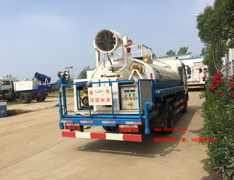 改裝部分:標配前沖、后灑、側噴、工作平臺、綠化高炮、自流閥、消防接口,輸水管3米2根,8噸以上罐體帶高位花灑2個,億豐泵或金龍泵,控制方式為手動。選裝氣動閥門控制;高位花灑,大鴨嘴,藥盤,罐體側面加裝萬向可調節噴頭,罐體后部壓塵噴灑裝置,兩個圓警燈或長警燈,LED箭頭燈,泵可選裝威龍泵或農藥噴霧裝置。